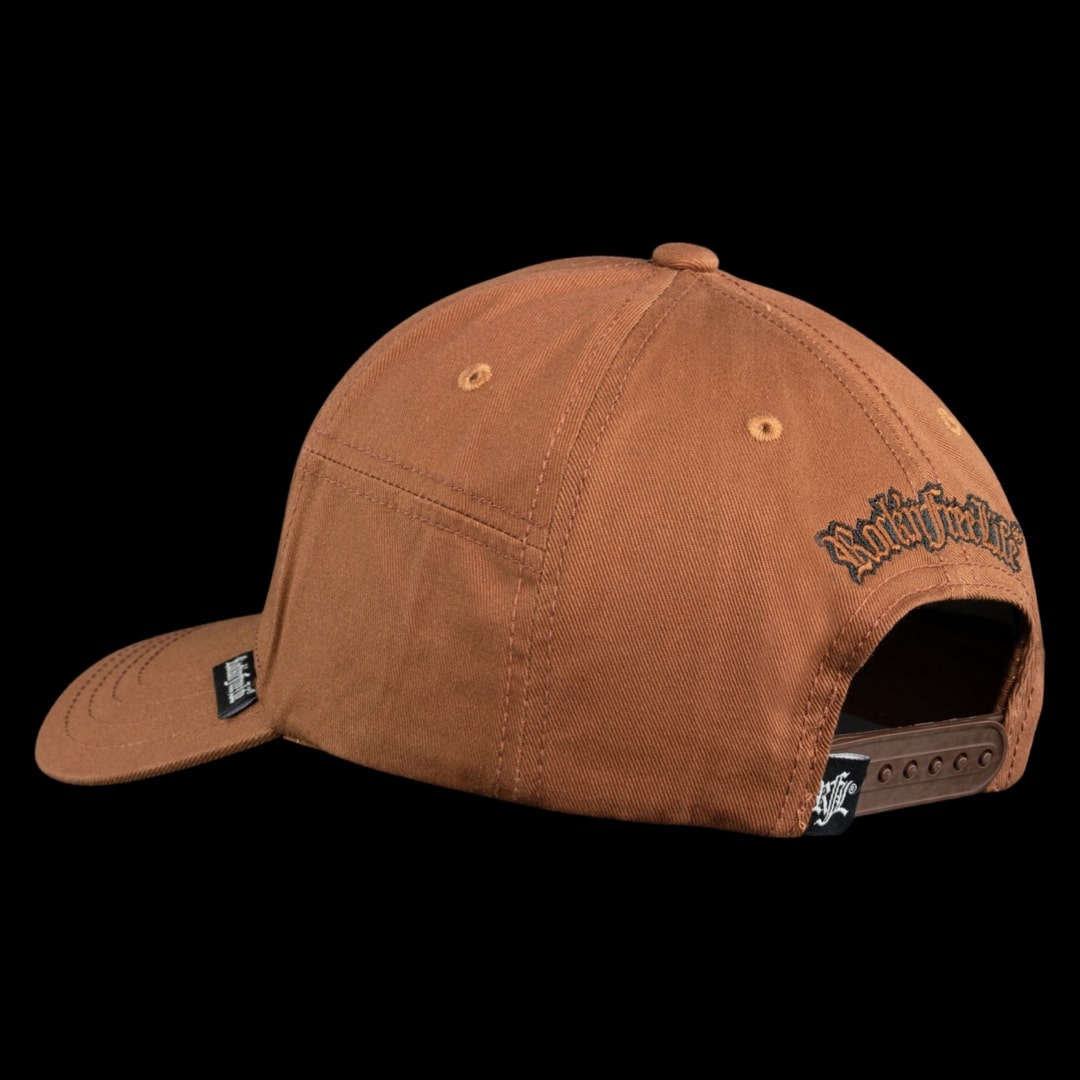 • Broderie Rock'nFreeLife® couleur chocolat contour noir arrière casquette