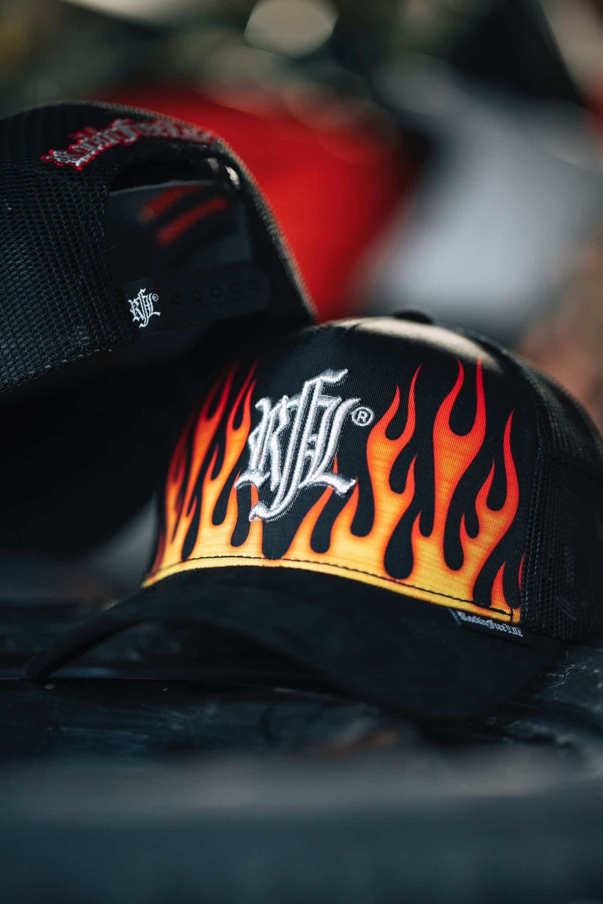 • Broderie  Rock'nFreeLife® couleur argent contour rouge arrière filet