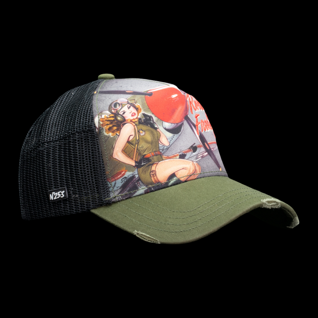 Un clin d'oeil au style pin-up vintage et à l'univers militaire, la casquette Hold My Hand rend hommage à l'audace des années 40. Esprit rétro, sensualité assumée et attitude rebelle réunis dans une pièce collector.